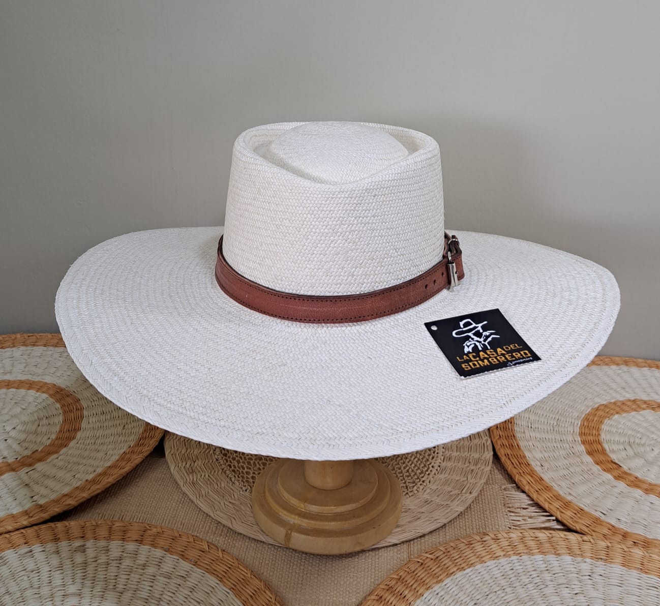 Sombrero artesanal típico de la zona norte del Perú, tejido a mano en paja natural toquilla de hebra intermedia, de ala corta.