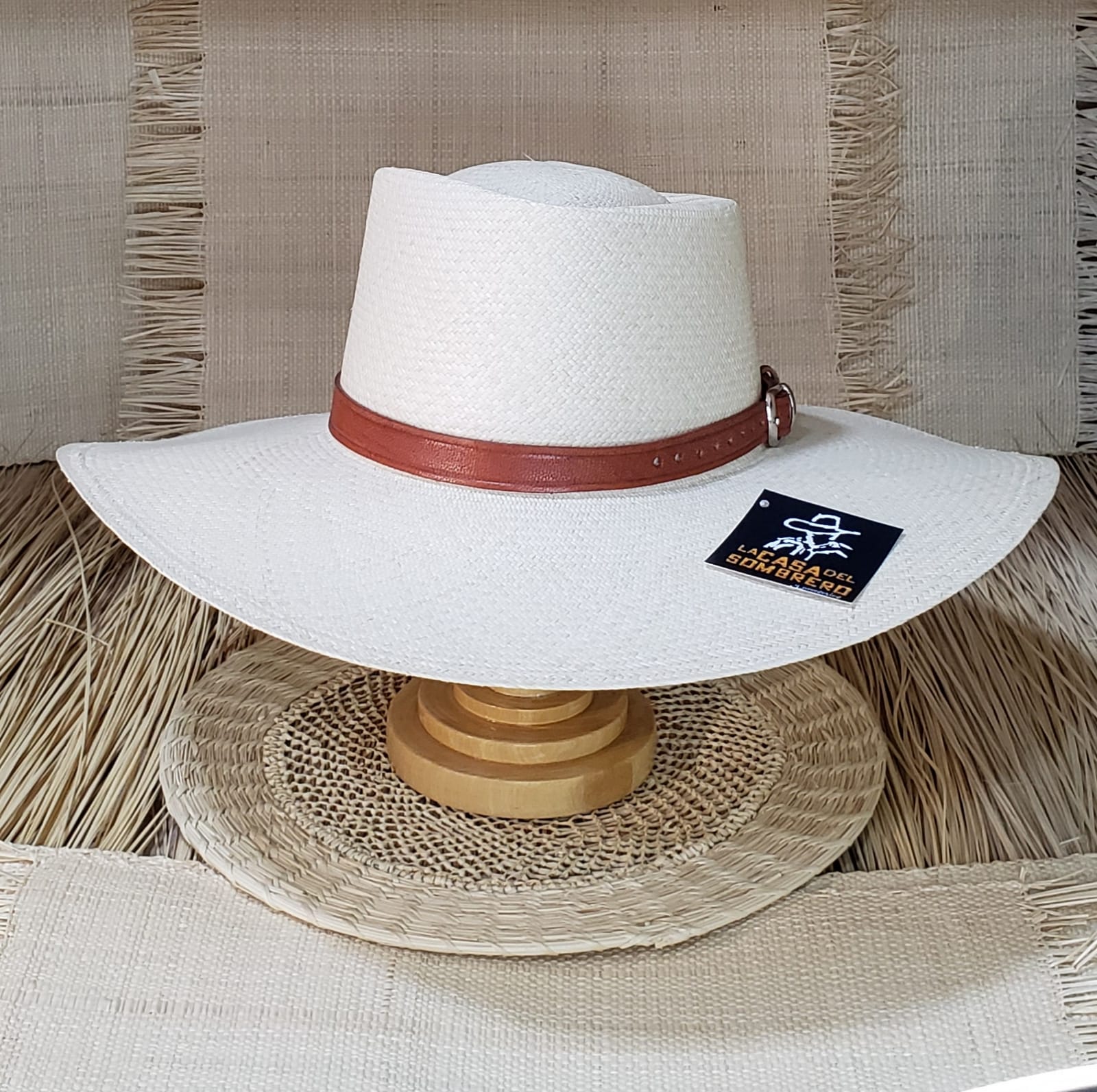Sombrero artesanal típico de la zona norte del Perú, tejido a mano en paja natural toquilla de hebra intermedia, de ala corta.