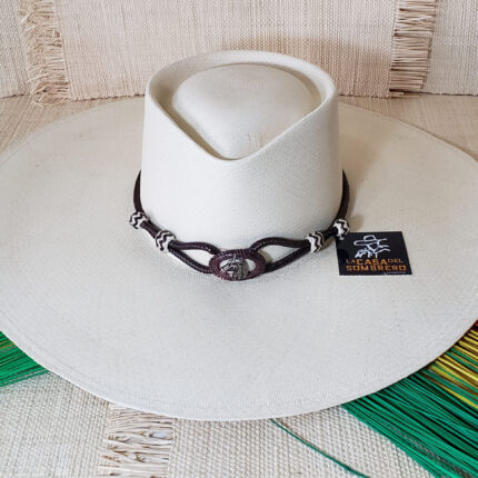 Sombrero artesanal típico de la zona norte del Perú, tejido a mano en paja natural toquilla, de hebra intermedia, de ala ancha.