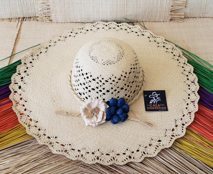 Sombrero artesanal clásico de dama, tejido a mano en paja natural toquilla, de hebra intermedia.