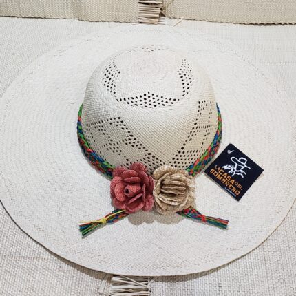 Sombrero artesanal clásico de dama, tejido a mano en paja natural toquilla, de hebra intermedia.