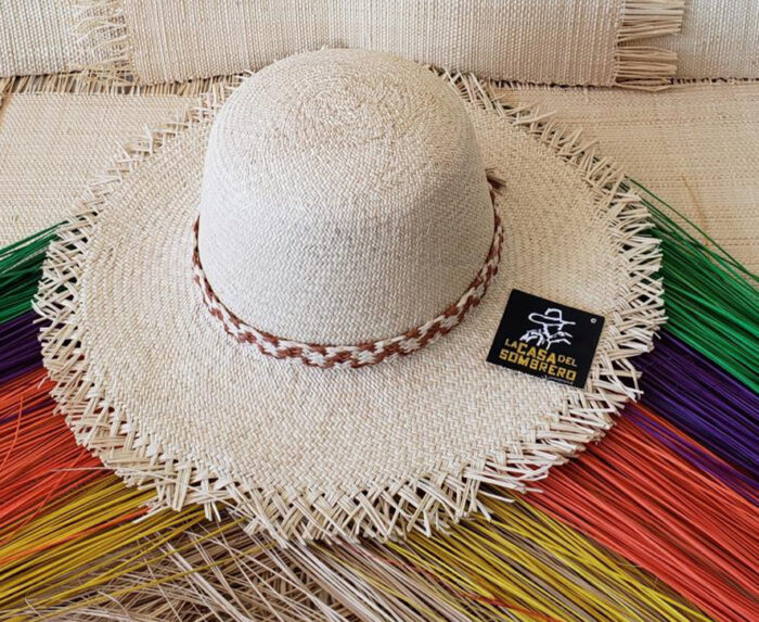 Sombrero artesanal clásico de dama, tejido a mano en paja natural toquilla, de hebra intermedia.