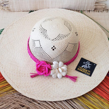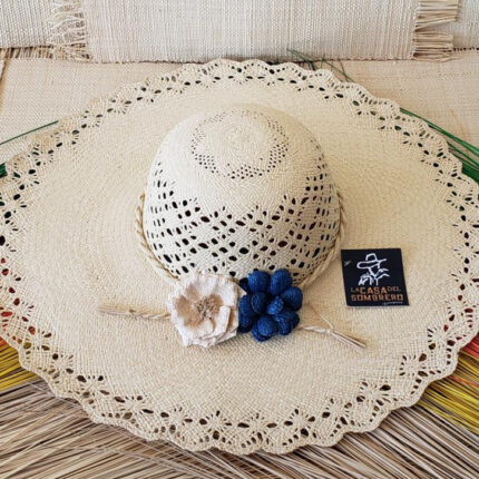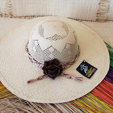 Sombrero artesanal clásico de dama, tejido a mano en paja natural toquilla, de hebra intermedia.