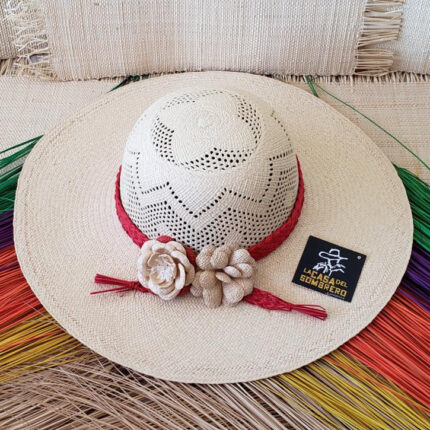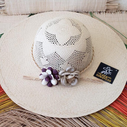 Tejido a mano en paja natural toquilla, combinación de colores.