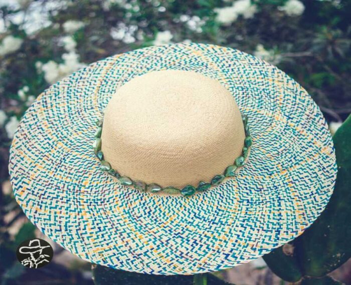 Tejido a mano en paja natural toquilla, combinación de colores.